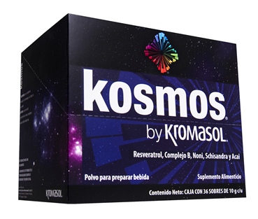 FUNCION DE RESVERATROL + MANGOSTAN + NONI + ASAI + MINERALES + VITAMINASKOSMOS: PODEROSO MULTIVITAMINICOSuplemento alimenticio que fortalece el sistema inmunológico, es auxiliar en personas con diabetes, hipertensión arterial y colesterol elevado. Sus ingredientes nutracéuticos tienen el mayor poder antioxidante conocido hasta ahora y pueden mejorar la apariencia del cabello, uñas y piel.