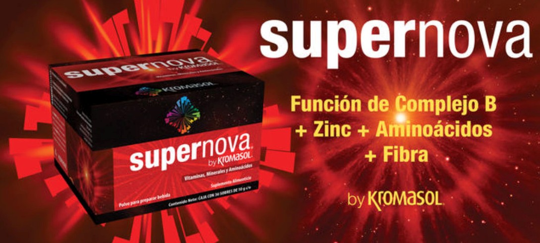 FUNCION DE COMPLEJO B + ZINC + AMINOACIDOS + FIBRAEXCELENTE MULTIVITAMINICO Y ENERGETIZANTE NATURAL RECOMENDADO PARA PERSONAS CON GRAN ACTIVIDAD FÍSICA Y Mental. Los minerales y vitaminas de supernova son ideales para todos aquellos que llevan un ritmo de vida muy estresante. Si debido a su nivel de actividad necesitas algo que te de extra para estar al 100%. El complejo B en altas cantidades, es excelente para combatir la fatiga crónica y mejorar el funcionamiento del sistema nervioso. En conjunto con el zinc y algunos aminoácidos, es excelente para dar energía sostenida. La fibra mejora el sistema digestivo.• Ayuda a evitar síntomas de fatiga y cansancio crónico· Quita el estrés• Auxiliar en el control de peso.• Ayuda a mejorar la circulación.• Contiene vitaminas del complejo B que en combinación con algunos aminoácidos provee de energía de forma natural.• Contiene fibra que mejora el Sistema digestivo.· Mejora la irrigación del cerebro• Promueve el metabolismo de proteínas y grasas. Increíble quemador de grasas (transforma las grasas en energía pura 100% natural)• Mejora el rendimiento en situaciones de estrés, estudio, trabajo y deporte.• Fortalece el sistema inmunológico • Efectivo contra la depresión